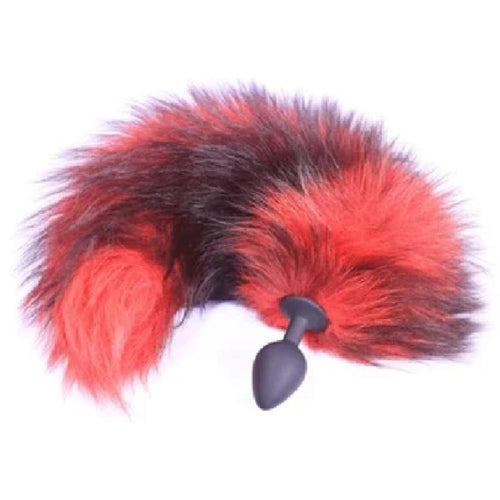 Roter und schwarzer 16" Fuchsschwanz-Buttplug aus Silikon BDSM