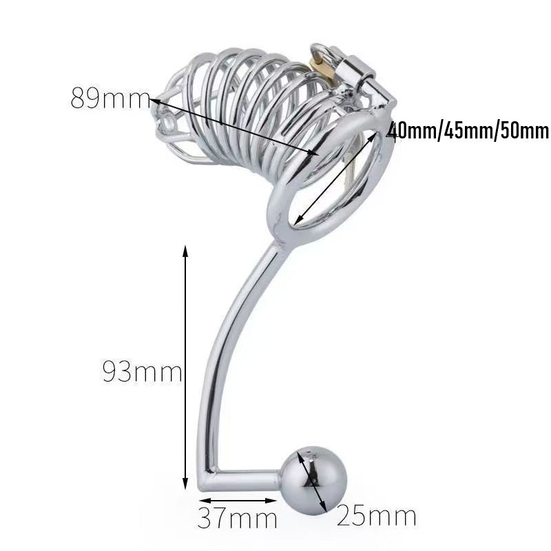 So the cage caters to both men who are obedient to their daily routine and want to wear the cage 24 hours a day, and men who prefer more intense exercises of urethral insertion and anal plugging.