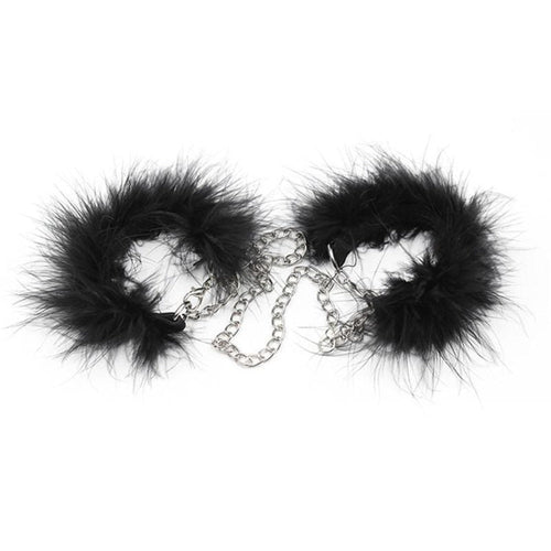 Menottes noires duveteuses à plumes BDSM