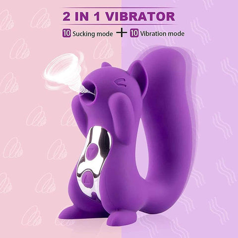 Jouet à sucer en forme d'écureuil - Puissant jouet à sucer et à lécher la langue - 10 modes - Jouet à sucer les tétons